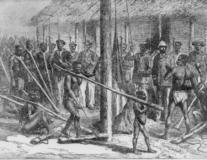 大規模なサトウキビ栽培からできた糖(砂糖)がヨーロッパに運ばれ、砂糖の代わりに奴隷確保のために武器と交換して